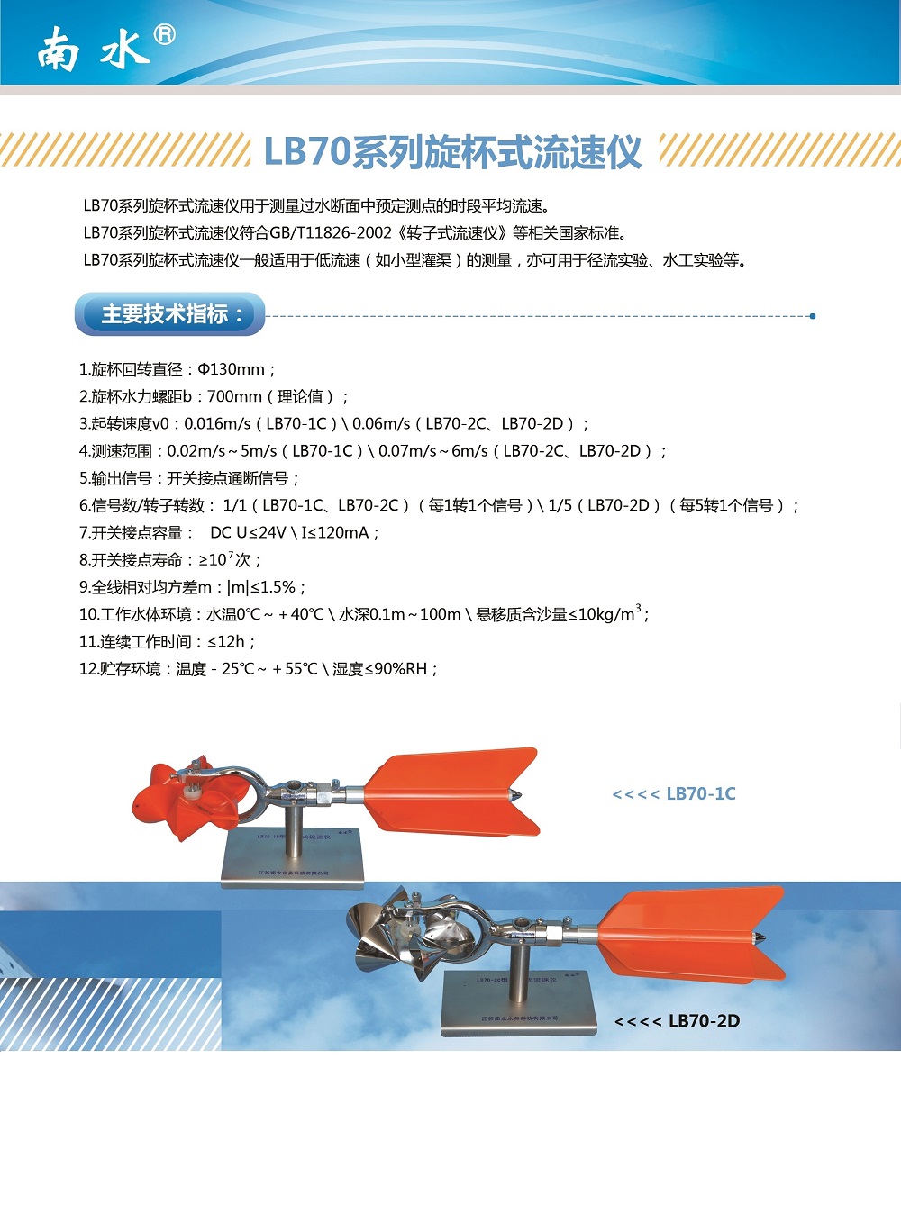 南水LB70-2D旋杯式流速仪